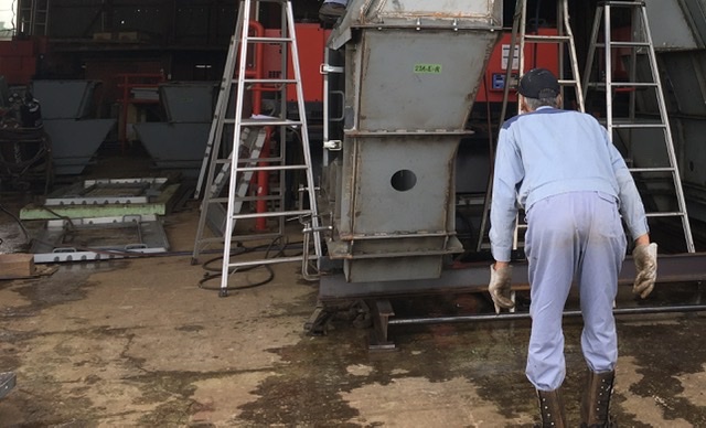 製缶品を作る上でどうしてもネックになるのが溶接による歪みです。溶接は鉄と鉄を溶かして接合するわけですが鉄は熱が加わると膨らみ、冷えるにつれ膨らんだ分以上に縮みます。なので少しでも歪まないよう…