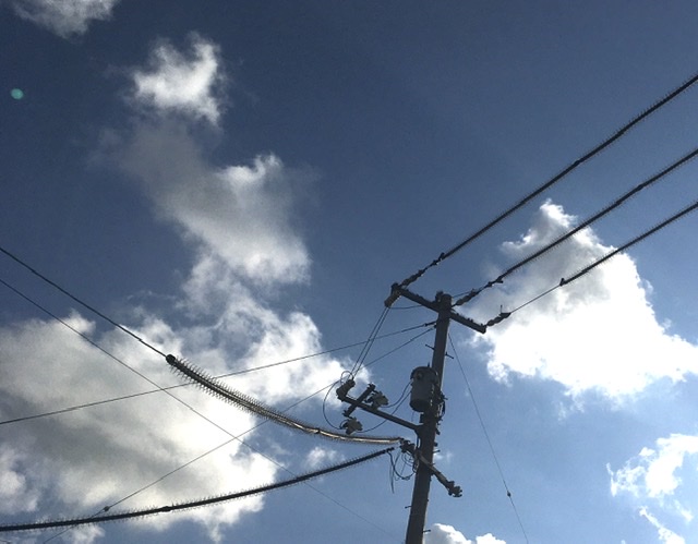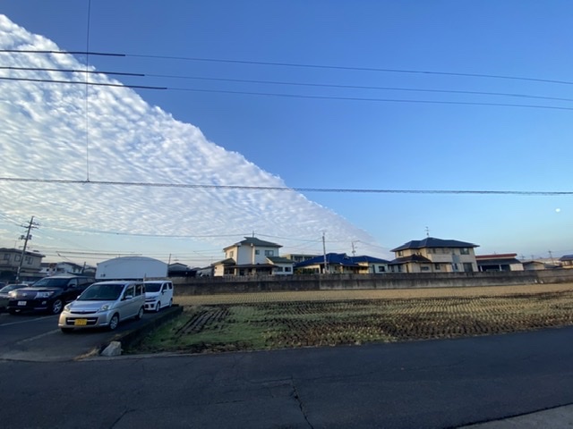今朝の空です空が青空と雲で真っ二つに分かれている今日の天気は雲/晴れか…w珍しい雲を見つけるとついつい皆に知らせたくなります(^^)