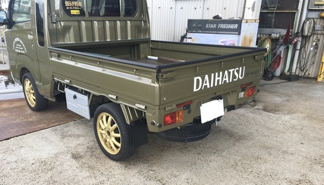 でかでかとステッカーを貼った軽トラを発見♪社長の軽トラがピックアップトラック風になっているwそのステッカーの写真がこちら♪↓渋滞の時などに、前のトラックのバックドアや「アオリ」に貼られている…