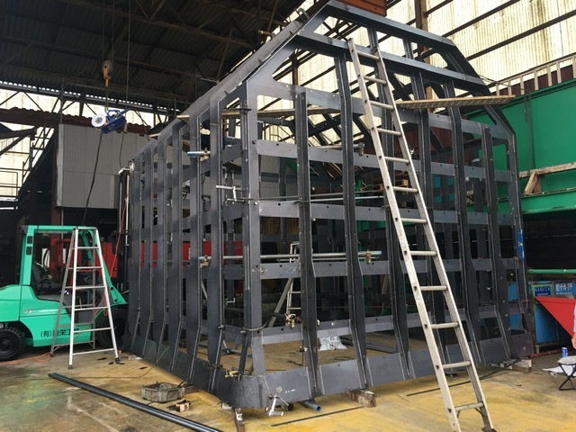 こんにちは南栄です。ここ最近は架台の製作がやけに多いです。架台のサイズによっては弊社での組立が不可能の場合もありますが、今回はギリギリ可能なサイズでしたので何とかなりました。(2.75m×3.…
