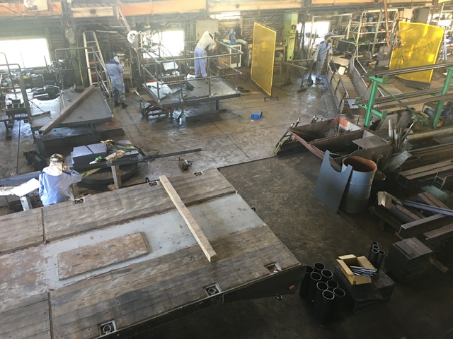 こんにちは南栄です。本日は仮組み確認してます。物が大きいのでバラバラにして輸送します。製作時に寸法等は図面通りになる様にしていますが微妙に取り付けに支障がある事が発覚したりするので現地据付工…